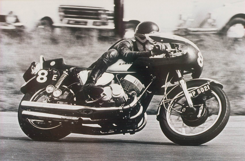 Japanese motorcycles from the ‘60s and ‘70s are these days very collectable, three-cylinder motorcycles have always been sought-after, and three-cylinder two-stroke motorcycles from any era have always been high in desirability for those who treasure the machines that everybody loved but relatively few got to own. Between 1968 and 1980 Kawasaki built very quick roadgoing two-stroke triples displacing 250, 350, 400, 500 and 750 cc, and they’re all much lusted after today, but the rarest of all are the factory racers that went like stink and won races, despite often mediocre handling and, in the early days, brakes that, well, didn’t do what their name implied. British-turned American collector David Crussell started his collection of Kawasaki triples at the age of 17 in the UK, sold off the lot when he moved to the USA in 1992, bought the first bike in his new American collection – a 750cc H2 – the day after he arrived in the States, and today he has about 24 vintage two-stroke road and race bikes, most of them Kawasaki triples. He harvests air cooled-road bikes and production racers, liquid cooled factory racebikes, drag bikes and modified street bikes wherever he can, and he and his wife, Lorraine have them all on display inside his modest Californian home. The ex-factory bikes have cast-iron credentials and very rare lightweight magnesium components, while Crussell shows that he’s not just a collector by winning American classic racing championships and contesting the Isle of Man classic TT in his spare time. To see Ed Milich’s fascinating story in Motorcyclist Online visit HERE and to see and hear our own silver-haired four-times Kawasaki World Champion Kork Ballington riding the ex-Greg Hansford 750 H2R briskly in Australia last year click HERE
