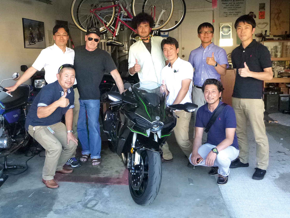 When insurance broker Mitch Feingersch bought a new supercharged Kawasaki H2 to park alongside the original ’72 Kawasaki 750 H2 two- stroke triple and ’85 GPz 750 Turbo at his Los Angeles home he agreed to take part in a couple of marketing surveys conducted by the American importer’s marketing guys. After participating in two of these he was surprised to be asked whether he would meet with company representatives at his home for a couple of hours – they even offered to pay for his time. On the appointed day at the appointed time he was surprised when the marketing guy arrived in a large white van with Kawasaki emblazoned on the side.