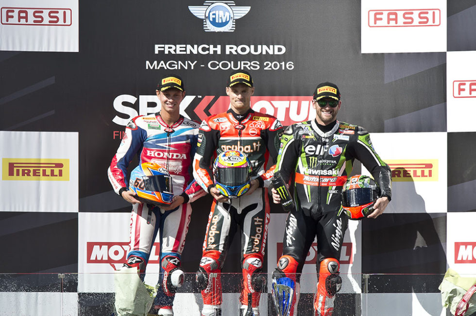 Chaz Davies won the opening Magny Cours race, with Michael van der Mark second. In the championship points, Jonathan has 406; Tom is 44 behind on 362, with Davies now 86 points behind Jonathan and in third place overall.