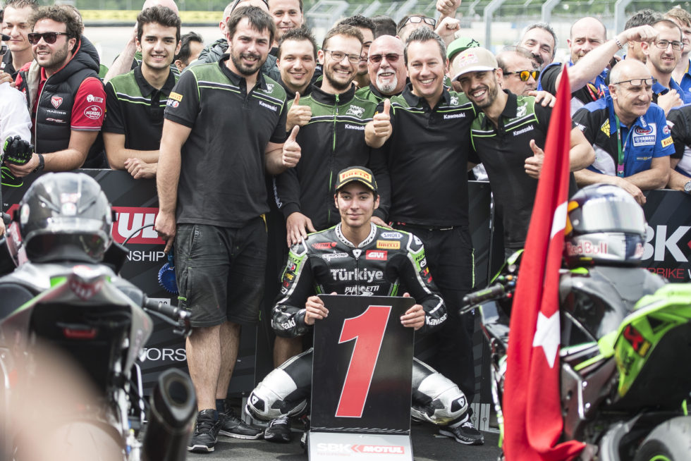 At the recent Donington Park meeting Kawasaki once again enjoyed great success, almost across the board. Tom Sykes and Jonathan Rea won a race apiece for KRT, as Kawasaki reached the landmark of 100 race wins since WorldSBK began in 1988. Kenan Sofuoglu was the winner of the WorldSSP race and, as described above, Toprak Razgatlioglu was victorious in the Superstock event.