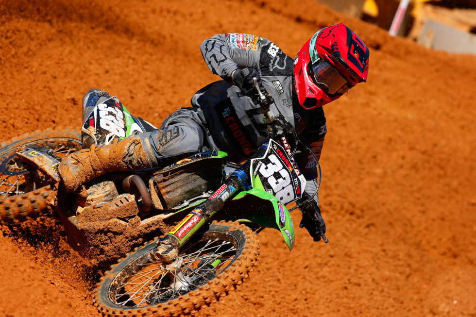 Stephen Rubini of the Monster Energy Kawasaki MX2 Racing Team also showed good speed during the practice sessions but an electrical connection on the bike was damaged by a rock on the opening lap of the qualifying race and he had to start both GP motos from the disadvantageous outside gate. He advanced quickly to fifteenth position in the first moto before a crash pushed him out of the points-scoring placings and he faced a stiff ride back to eighteenth to earn three points. The second race was soon effectively over as another rider shunted Stephen after another top fifteen start and he lost more than a minute trapped under his own bike.