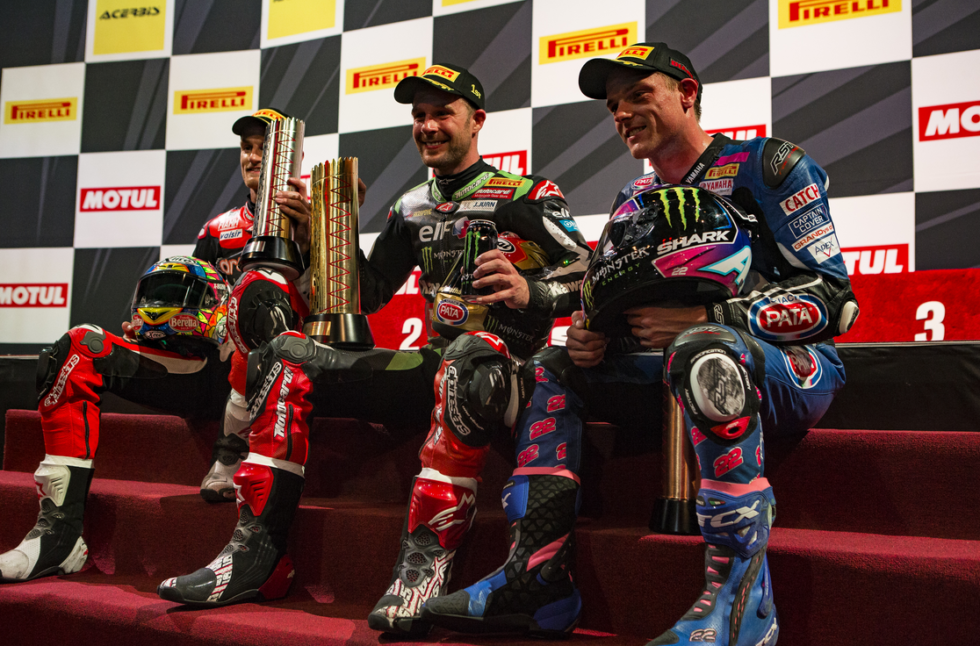 Jonathan Rea, stated: “The points tally is nice but the championship is the main thing. To win 16 races in a season, more than 50% of the races, is not normal. That’s the biggest thing I take away. This year, like I keep saying, I have no words. It has been feeling normal to be here on the podium and that is kind of scary. Right now is my time, so I really am enjoying the moment. Next year it could easily be somebody else so we really need to enjoy this and celebrate an incredible year. I know how difficult it is when things are not coming naturally, and it is an uphill struggle, so that is why I am so grateful to Kawasaki for this opportunity. It is a huge team effort. In a few weeks’ time we can start turning our attention to 2018.”