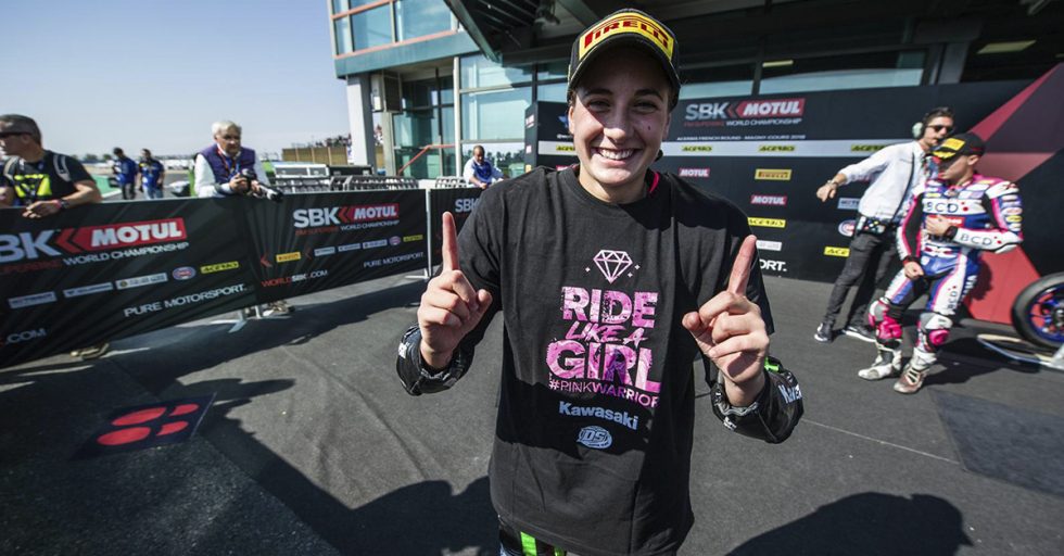 Carrasco was unaware that she had won the championship on her slowdown lap almost until her team stopped her for a trackside celebration, with her championship-winning T-shirt having the phrase ‘Ride Like A Girl” emblazoned on the front. In her post-race interview Carrasco dedicated her championship win to the late Moto2 rider Luis Salom, who was a friend of Ana’s and the cousin of David Salom, her team manager.