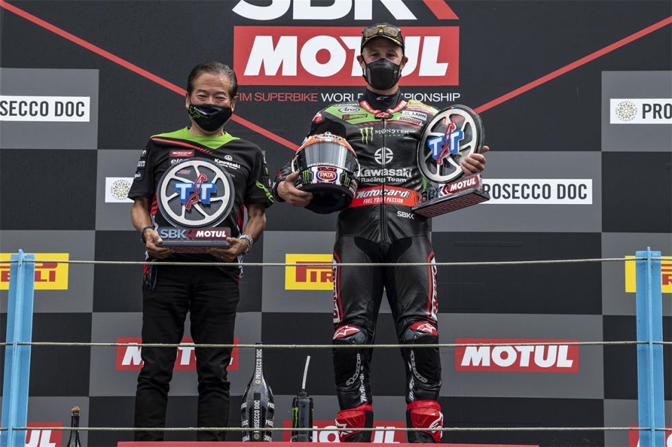 In race two Rea had to push his pace to overtake long time leader and series rookie Andrea Locatelli at the halfway point. Jonathan eased out his lead and finally won the 21-lap race by 1.605 seconds, from second place rider Scott Redding. Rea’s closest championship rival Toprak Razgatlioglu was involved in a first corner incident that saw him crash out and no-score.