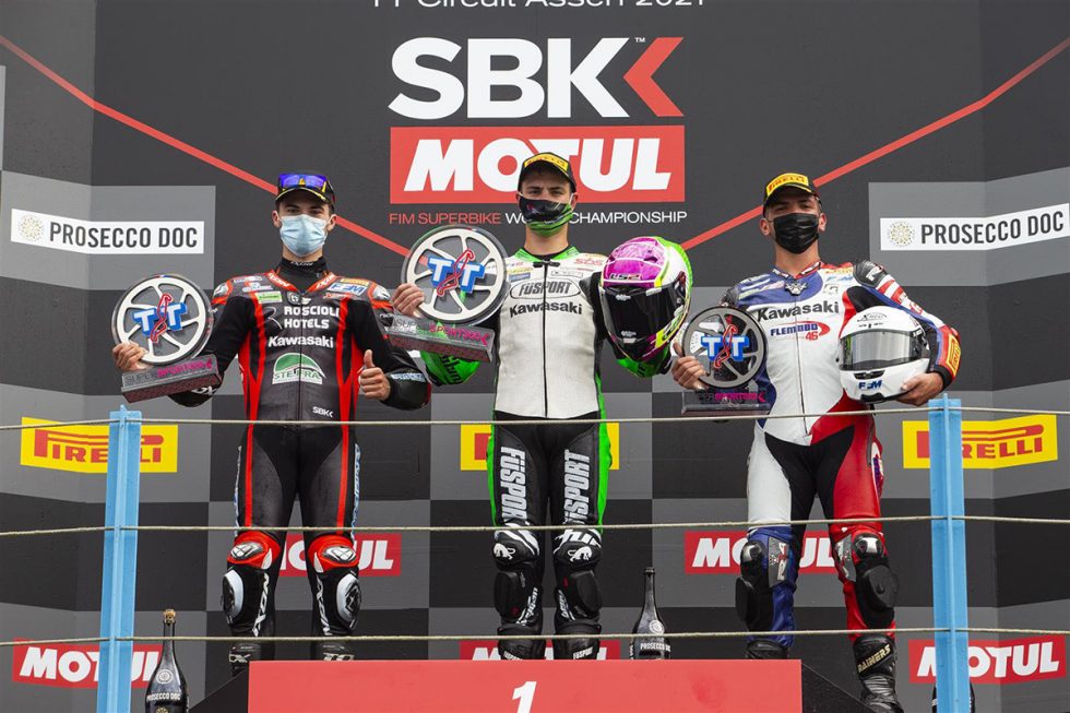 Joining Huertas and Booth-Amos on the podiums were Koen Meuffels (MTM Kawasaki MOTOPORT) and 2020 champion Jeffrey Buis (MTM Kawasaki MOTOPORT) in Race One and then the French duo of Hugo De Cancellis (Prodina Team Kawasaki) and Samuel De Sora (Leader Team Flembbo) in Race Two.